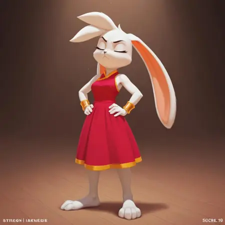 作者:nativefall,这是他在视频中使用的兔子,也是他的头像,使用了我找到的关于她的公开图片进行训练。包含两套服装。如果你将参数设为2,会得到vulkyasha的3D模型,我曾用它作为训练图。用不同艺术风格尝试起来非常有趣,但请注意,当你脱掉她的衣服时,金手镯往往会出现奇怪的变形。