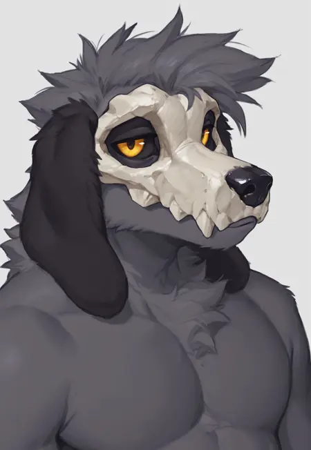 chumblings, 骨头面具, 面具, 动物耳朵, 黑色耳朵, 黑色身体, 黑色皮毛, 灰色身体, 灰色皮毛, 双色身体, 双色皮毛, 黄色眼睛, 犬科, 犬类, 狗