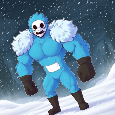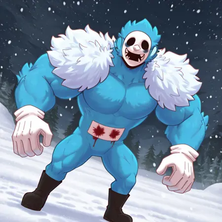 Trigger words : Yeti Tubby, Monster, White fur shoulder pad, blue fur, mask, fangs