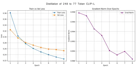 HiDream CLIP은 디스틸레이션 세트에서 학습되었으며, 풀링된 비전/텍스트 모델 출력을 기반으로 248 및 218 토큰 길이를 77로 축소했습니다.