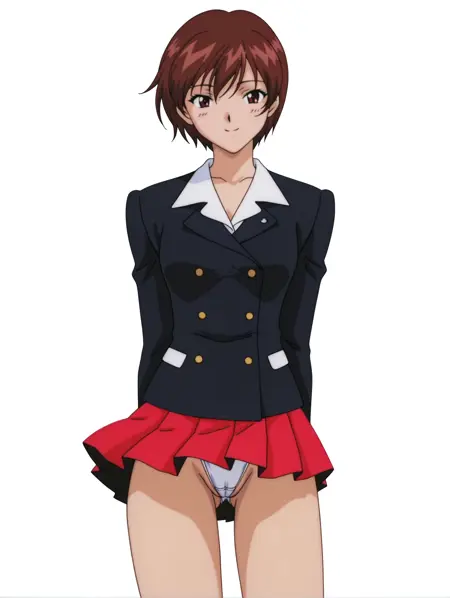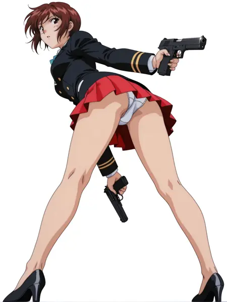 衣装ワード  ・e_clothes,black jacket,red pleated skirt,white underwear,black high heels,