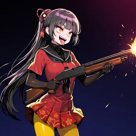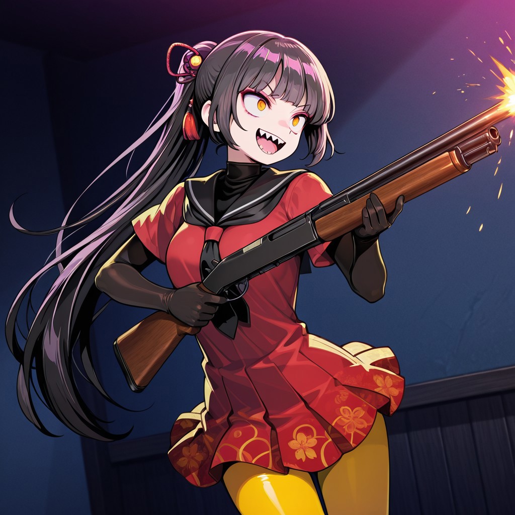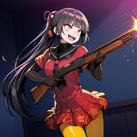 추가 프롬프트: 상어 이빨, 샷건, 샷건 들고 있음,