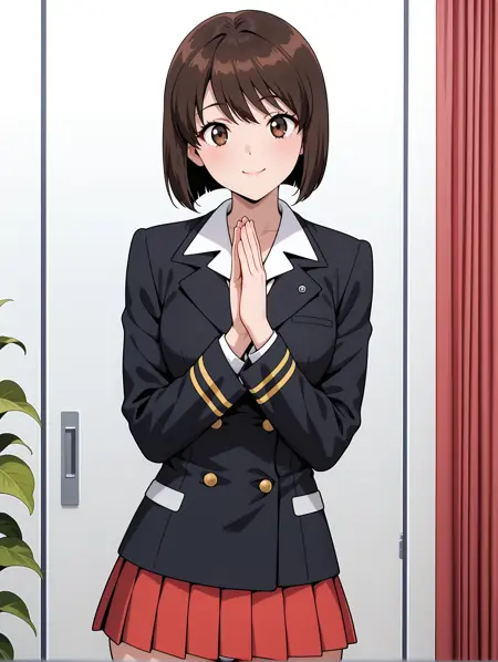 트리거 단어: e_d_c, bob cut, brown hair, brown eyes,