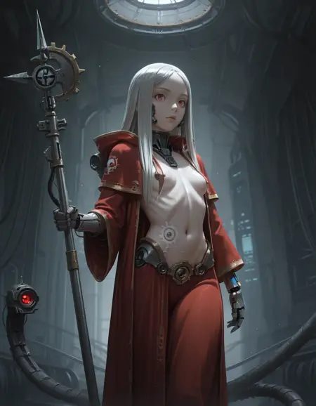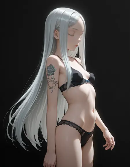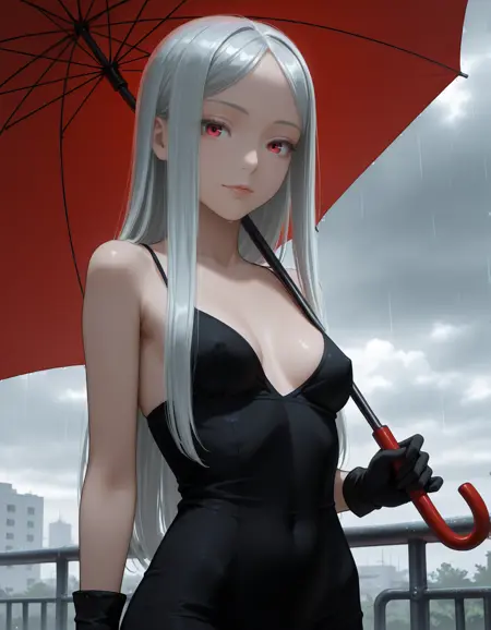 기본 트리거 단어: 은색 헤어, 긴 헤어, 앞머리 없음, 이마 노출, 붉은 눈, 얇은 입술, 작은 자연스러운 가슴
