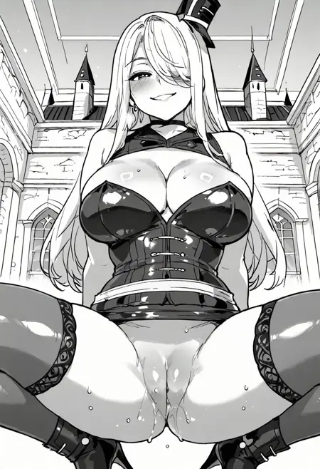 单色:(( lora:ryoko\_oideyo:1 , ryoko_oideyo, 尖锐的眼睛,清澈的眼眸,明亮的瞳孔,美丽的眼睛,美丽的长直发,刘海,头发遮住一只眼睛,巨大蓬松的乳房,纤细腰身,宽臀,美丽的肌肤,自然美,超凡美丽的女性,迷人女性,超级性感女性,欲望的身躯,性感且带有诱惑性露骨体态,性感体态,丰腴体态,性感美人,))