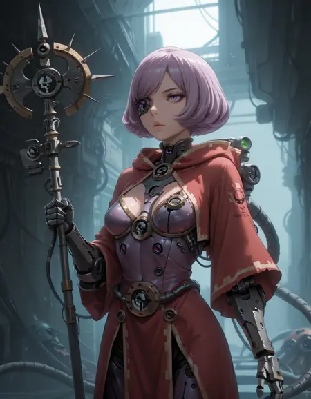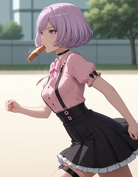 기본 트리거 단어: 창백한 보라색 머리카락, 짧은 머리, 밥컷, 앞머리, 진한 보라색 눈, 얇은 입술, 중간 크기의 자연스러운 가슴,