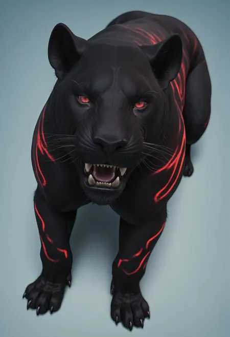 shilf, 색상이 있는 털, 검은 털, 동물, 붉은 눈, 송곳니, 날카로운 이빨, 빛나는 눈