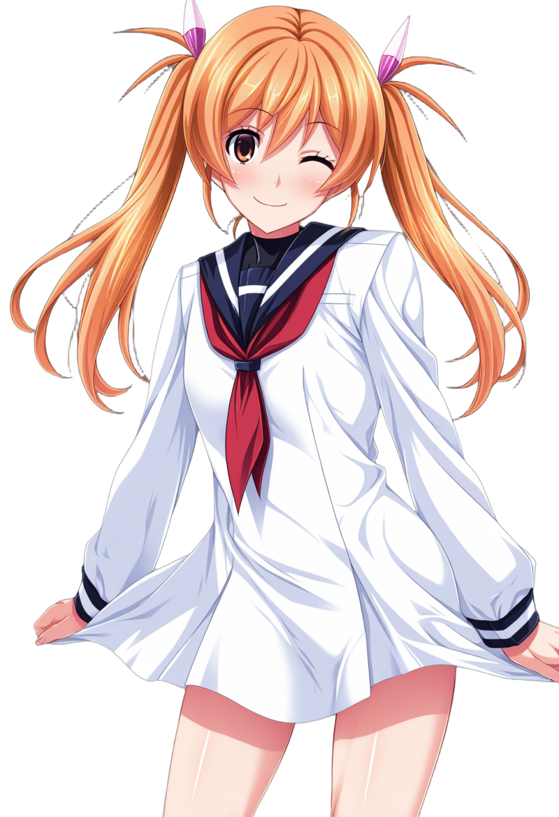 服装: 水手服,水手领,红色领巾,蓬松长袖,