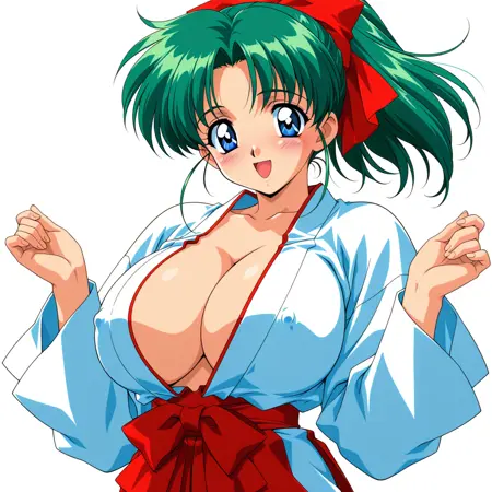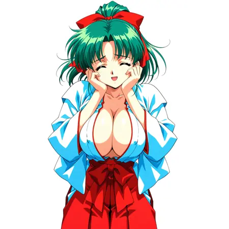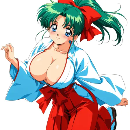 Civitai 緑髪爆乳ポニテ巫女 / green hair huge breasts ponytail miko.