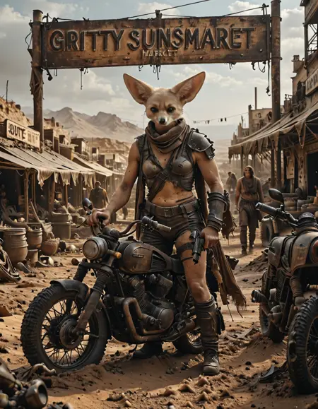 マッドマックス風の都市、家、店舗、車両。砂と泥。