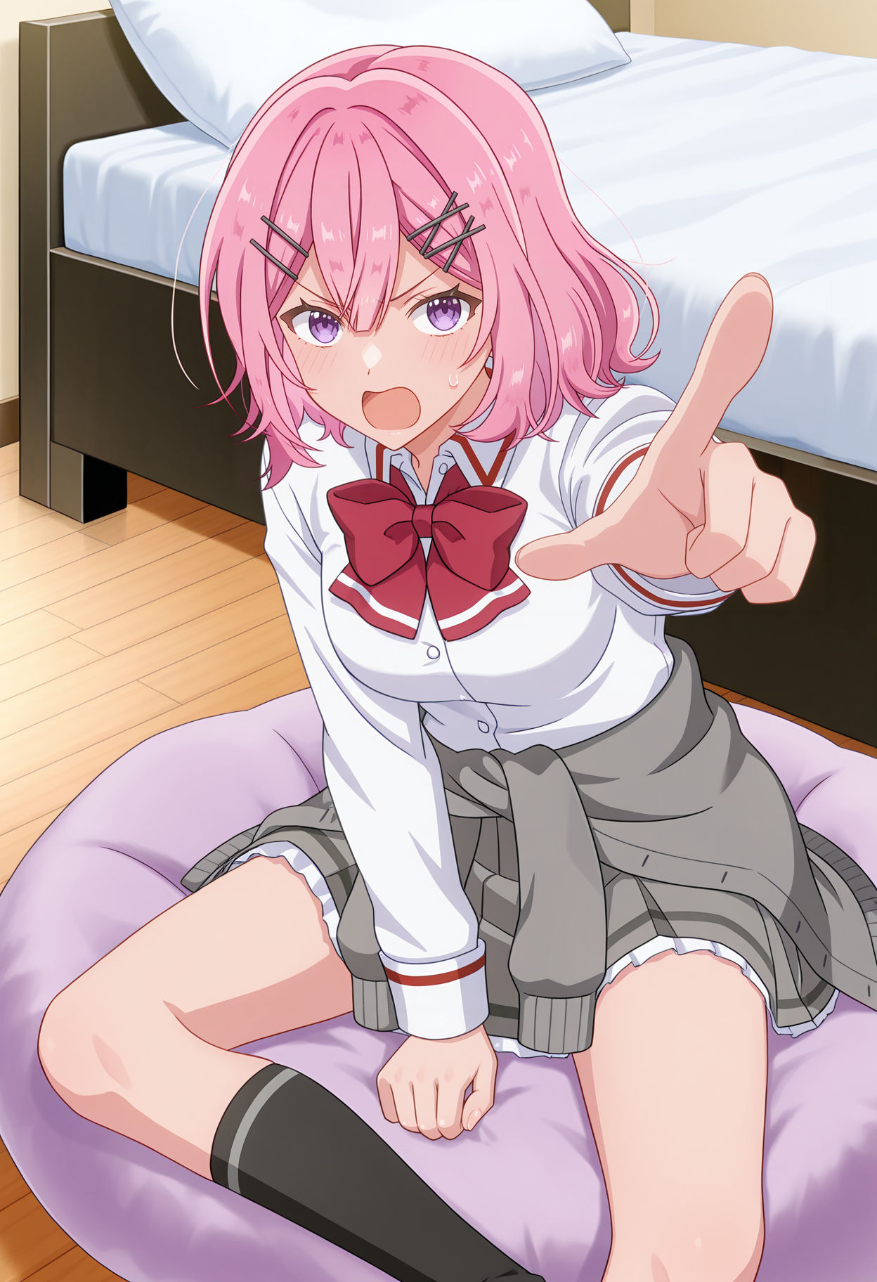 purple eyes,pink hair,