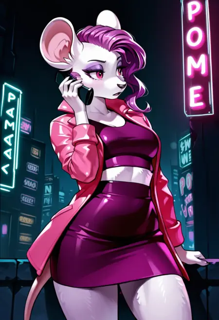 포무: pomme, 쥐, 여성, 퓨리, 흰색 털, 보라색 머리, 분홍색 눈, 아이섀도우