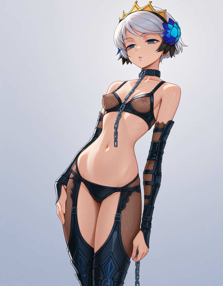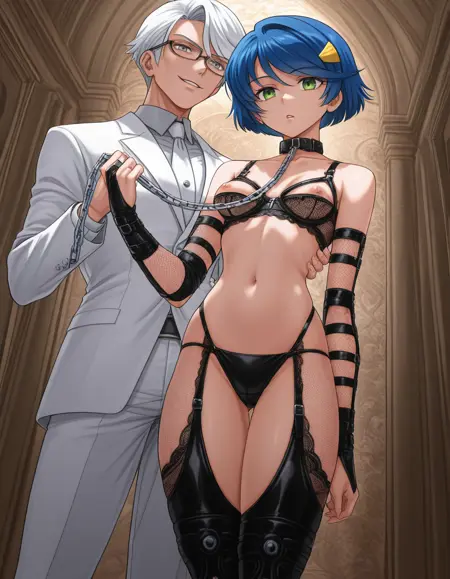 Scheris from the S-CRY-ED manga when she is brainwashed and given a makeover. Trained off a limit material from the manga. Monochrome carries more of the outfit details but works well in color. The top can be inconsistent - the mesh and transparency can be trial and error.
