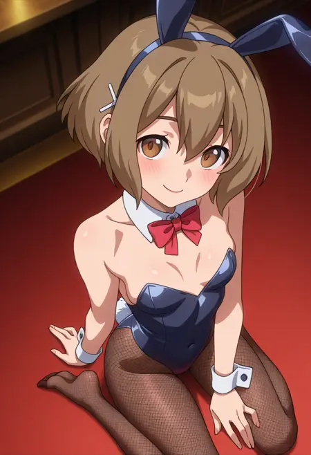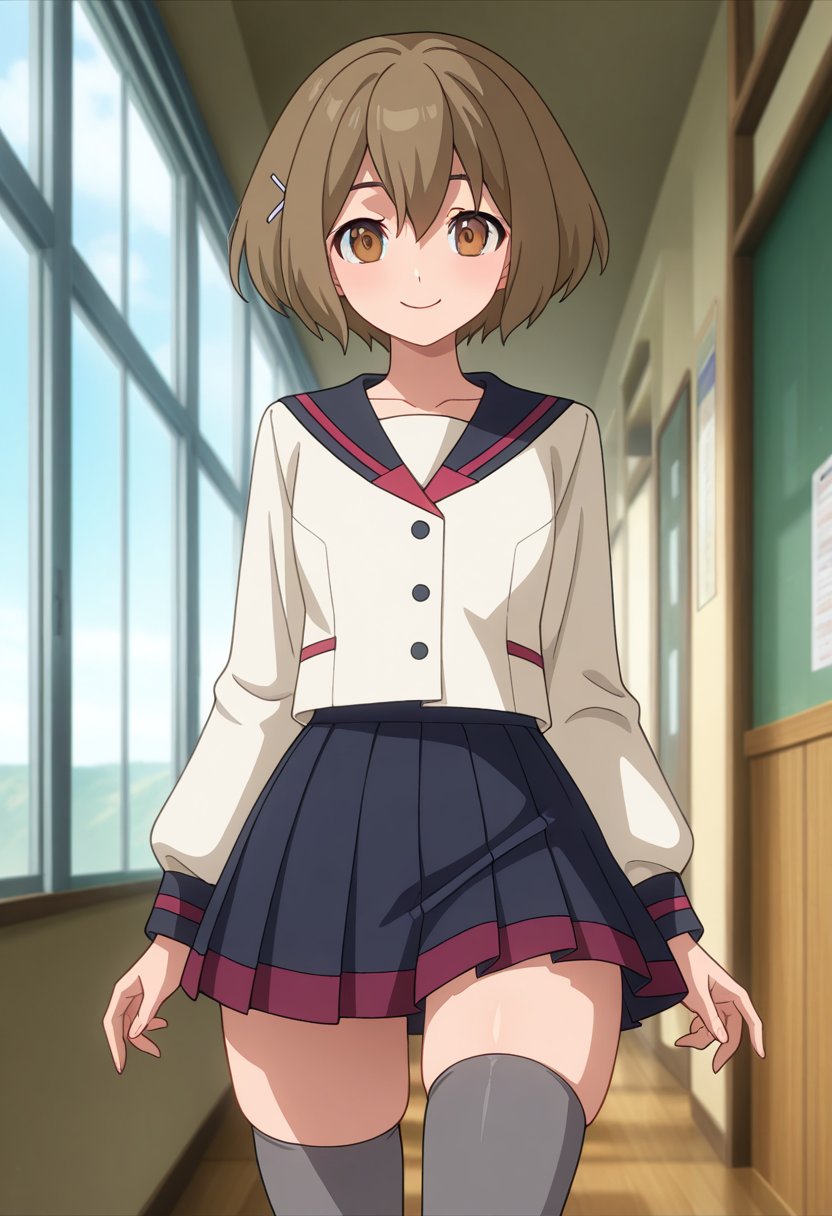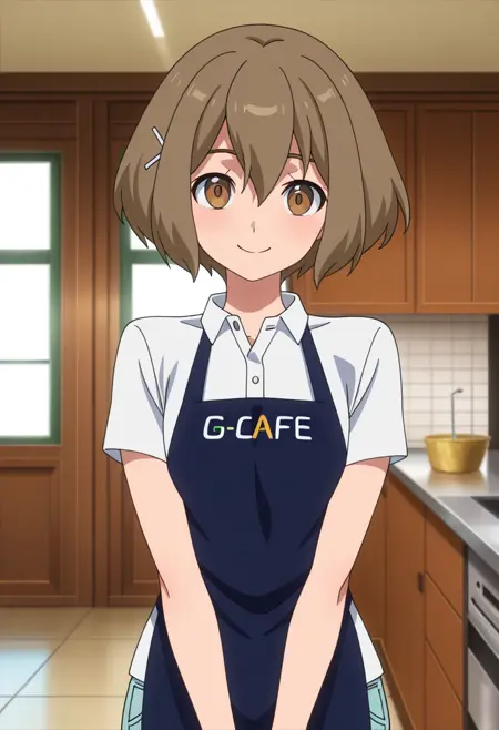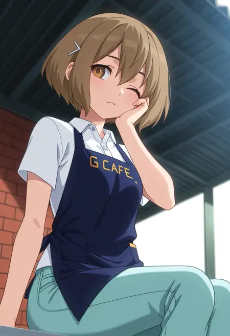 • hinataww, 棕色眼睛, 棕色头发, 短发, 短马尾, 发丝垂于眼前, 侧发, x 发饰,