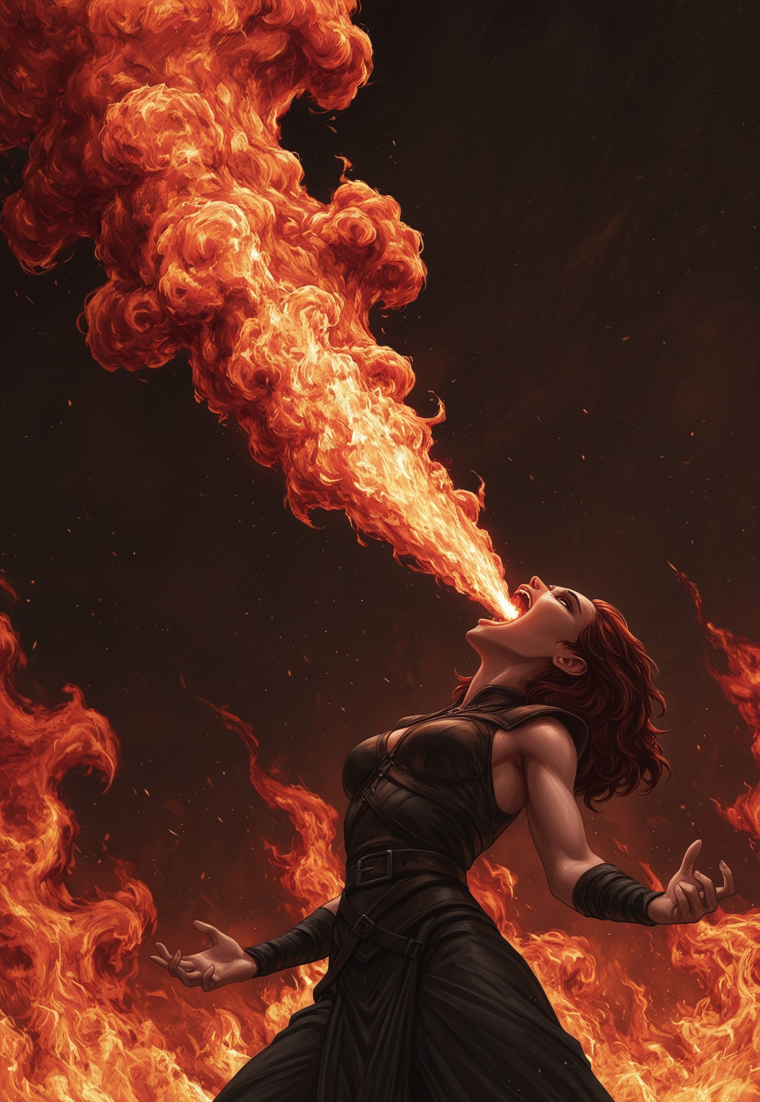 Firbremb2, breathing fire, flame eruption, fiery breath attack, mouth fire blast, flame stream, blazing energy,