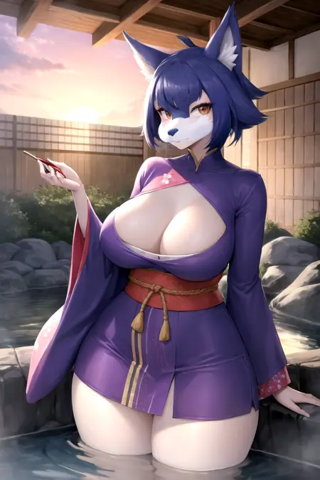 - 1girl, breasts, thighs, furry, furry female, huge breasts, thick thighs, animal ears, colored skin, pokemon \(creature\), wide hips, shiny skin, animal nose,