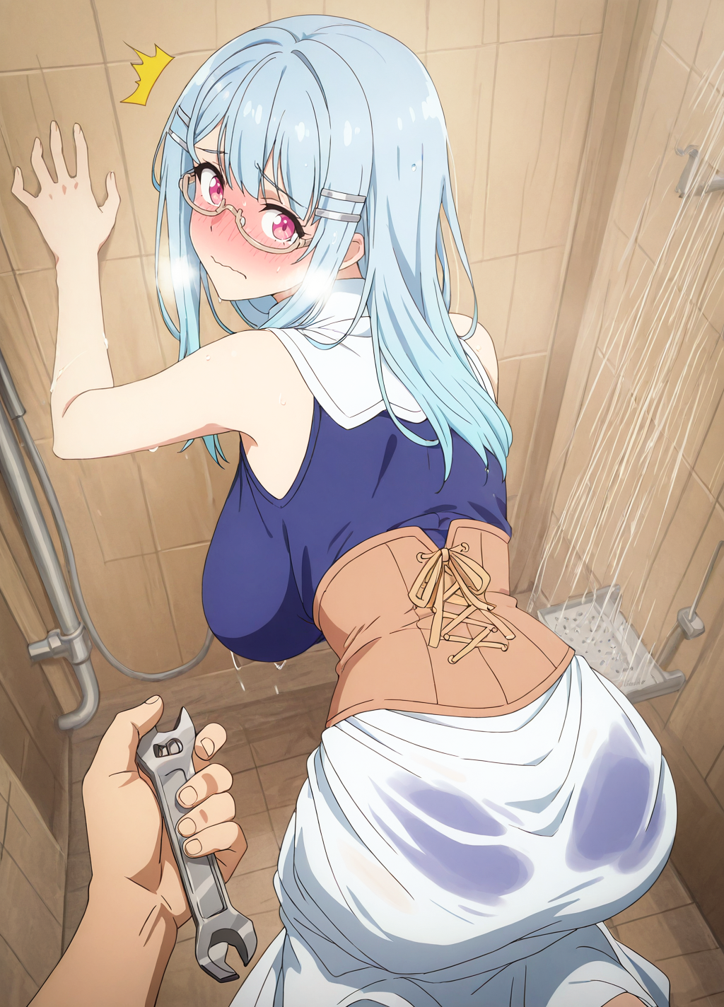| トレーニングワード | showering, from behind, forgetshampoo,shower \(place\), (Pipe burst),コピーしました! pov hands, 1boy, holding wrench,コピーしました! (wet, wet clothes:1.2), wet hair, heavy breathing, embarrassed, blush, panicking, ^^^, full-face blush, wavy mouth,コピーしました! |
