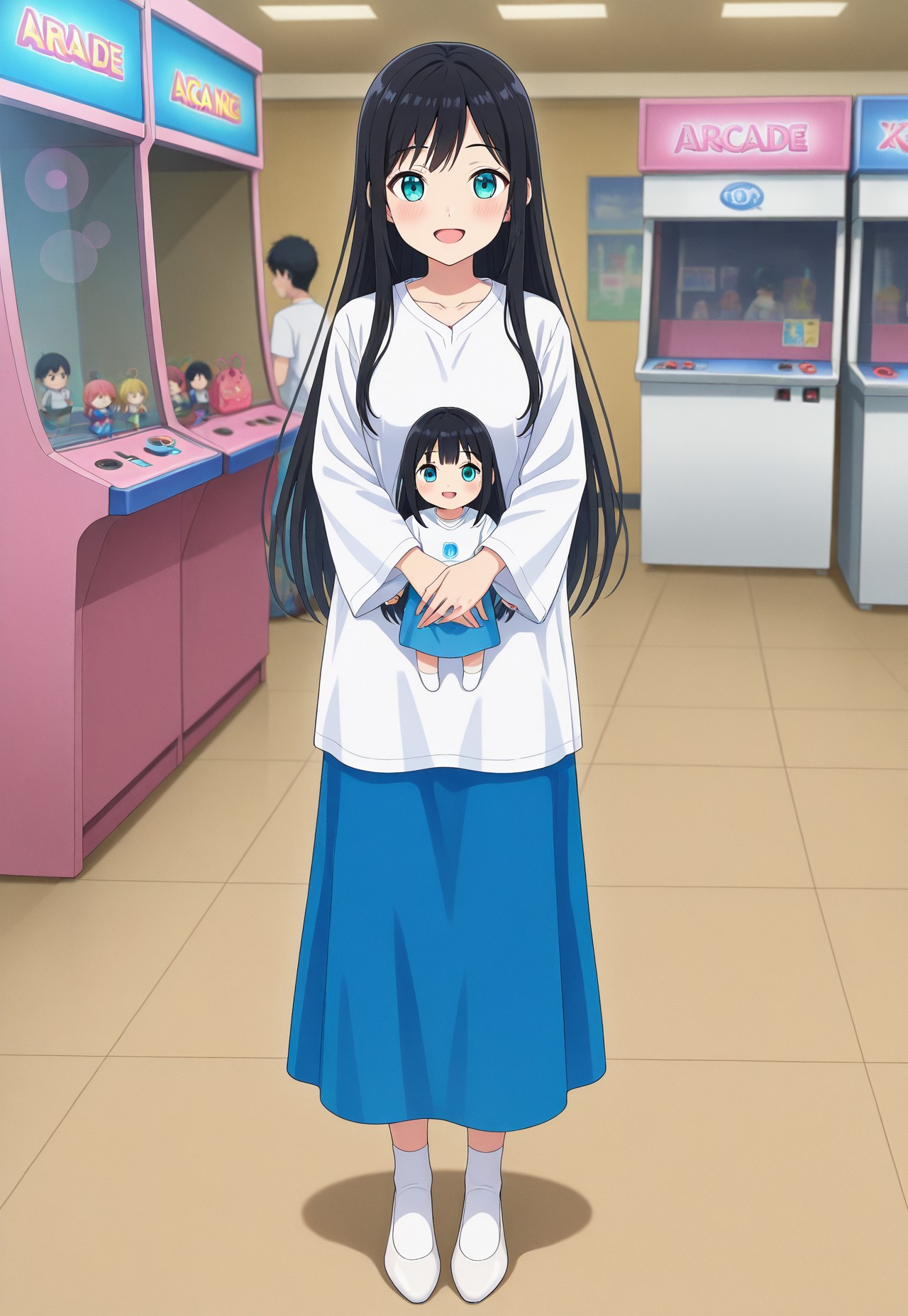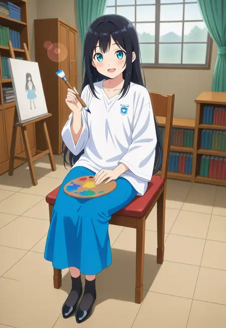 这是《马来西亚校服》的第二种校服(过去AI绘图是背心裙校服,称为“pinafore dress”),白色笼装搭配深蓝色长裙(没有佩戴头巾)。
