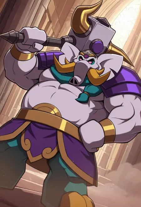 그의 주 무기 역시 항상 올바르게 생성되지 않지만, '전쟁망치' 또는 '매스'를 사용하여 생성할 수 있습니다.