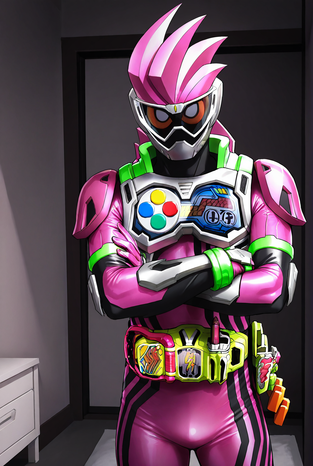 ex-aid, belt, bodysuit, tokusatsu, armor, rider belt, mask, helmet, pink gloves, gloves, boots