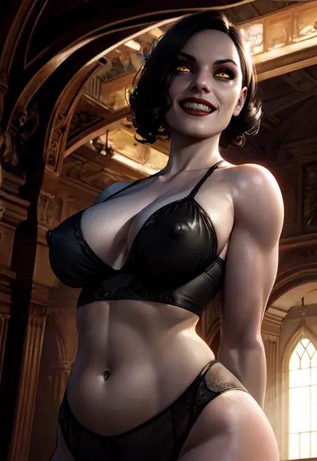 Alcina, 黄眼睛或灰眼睛,黑发,中等长度头发,化妆