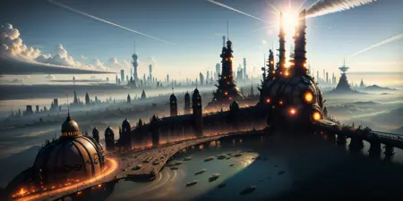 ((robot, human, person, model platform)), (greyscale:1.2), paintings, sketches, (worst quality:2), (low quality:2), (normal quality:2), lowres, normal qualitypainting of a sprawling metropolis city, art by WAS-Steampunk
