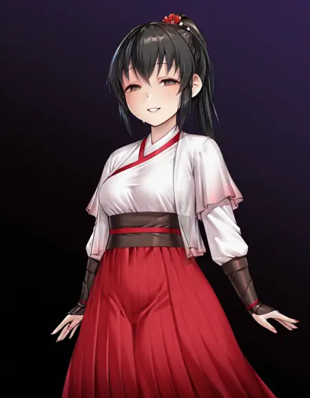 lora:YuXiaomei-000010:1 yuxiaomei, ponytail, long hair, black hair, brown eyes, white dress, red skirt