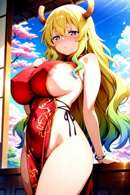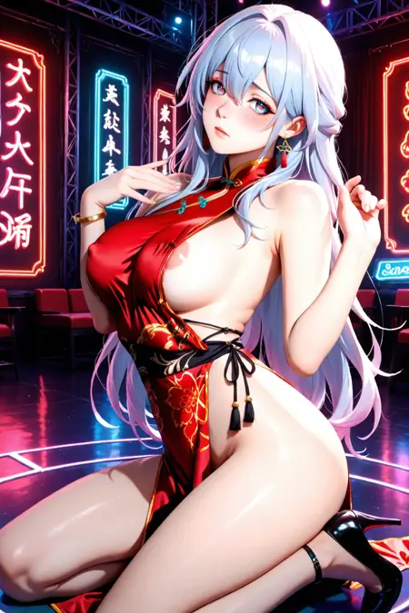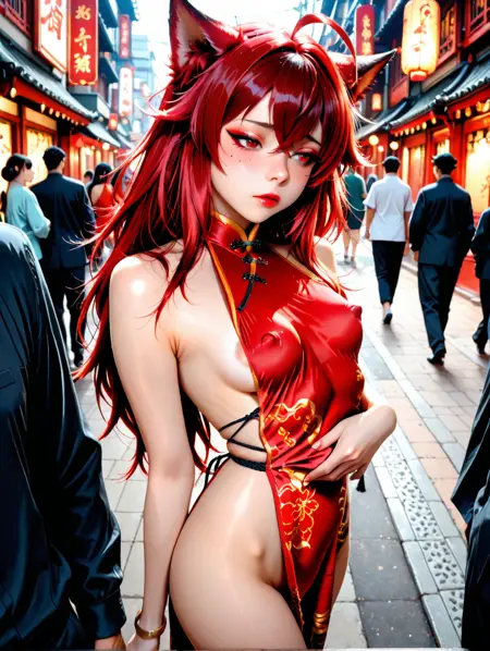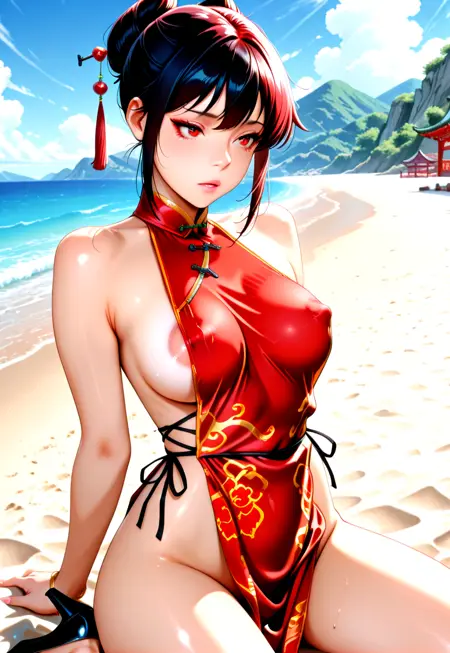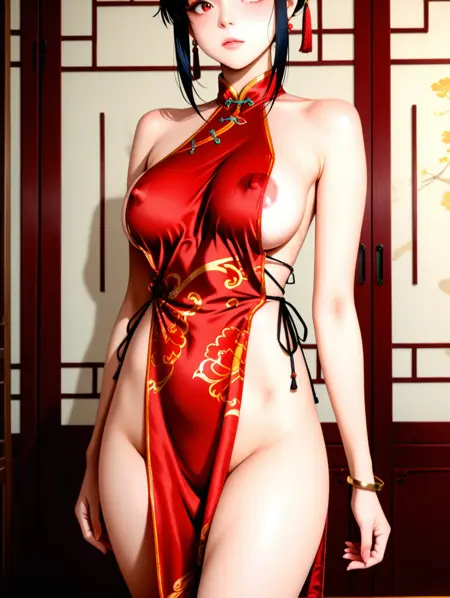 V1.0 트리거 단어 breasts,dress,red dress,sideboob,no panties,chinese clothes,jewelry,high heels,thighlet,china dress,bracelet,areola,bare shoulders,sideless outfit,sleeveless dress,