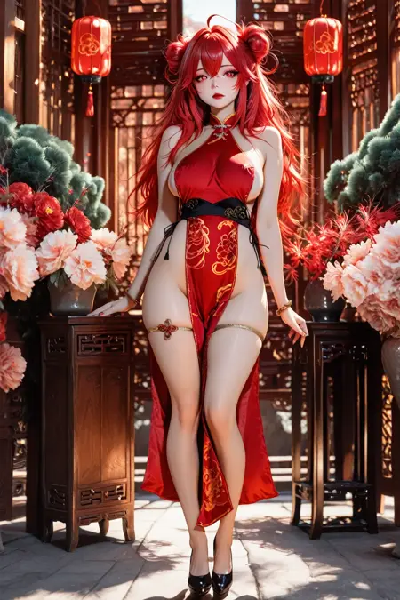 V1.0 트리거 단어 breasts,dress,red dress,sideboob,no panties,chinese clothes,jewelry,high heels,thighlet,china dress,bracelet,areola,bare shoulders,sideless outfit,sleeveless dress,