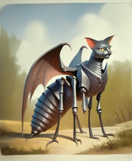 アーティストルイ・ル・ブレトンのさまざまな画像に基づいて学習されたスタイルモデル。彼は『ディクショネール・インフェルナル』での挿絵で最も有名である。彩られた画像を生成する能力は、白黒の画像を生成する能力と同等である。バージョン1.0は、『ディクショネール』からのものだけでなく、風景画や肖像画を含む彼の作品20点で学習された。バージョン2.0は、同様に多様なテーマの画像26点で学習された。その結果、広範なテーマを生成できるようになっている。各モデルの「このバージョンについて」セクションを読んで、その機能についての詳細を確認してください。
