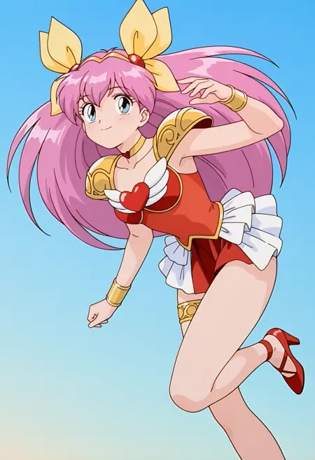マジカルガール, 黄色のヘアーボウ, 黄色のチョーカー, ショルダーパッド, アーマー, ウィングピン, ハートピン, ブレスレット, スカート, サイラン, 赤いストラップヒール