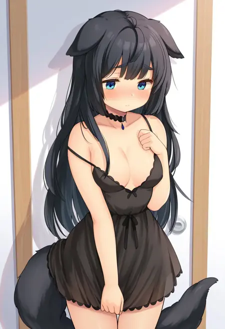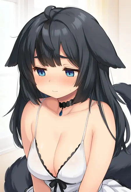 WHITE DRESS, LACE CHOKER, THIGHIGHS,