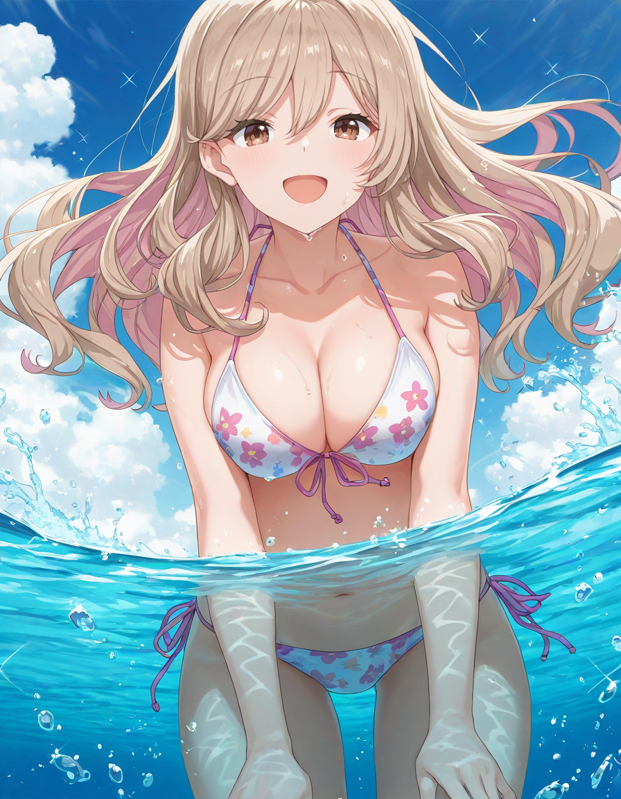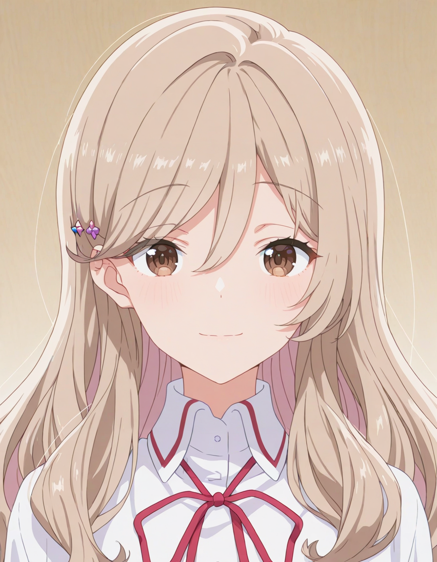 <lora:ajisai_sena-watanare_s1-v3-ixl-anime-soralz:1>, ajisai sena (watanare), 긴 머리, 갈색 머리, 안쪽 머리 빨간색, 다색 머리, 눈 사이 머리, 머리 장식, 갈색 눈