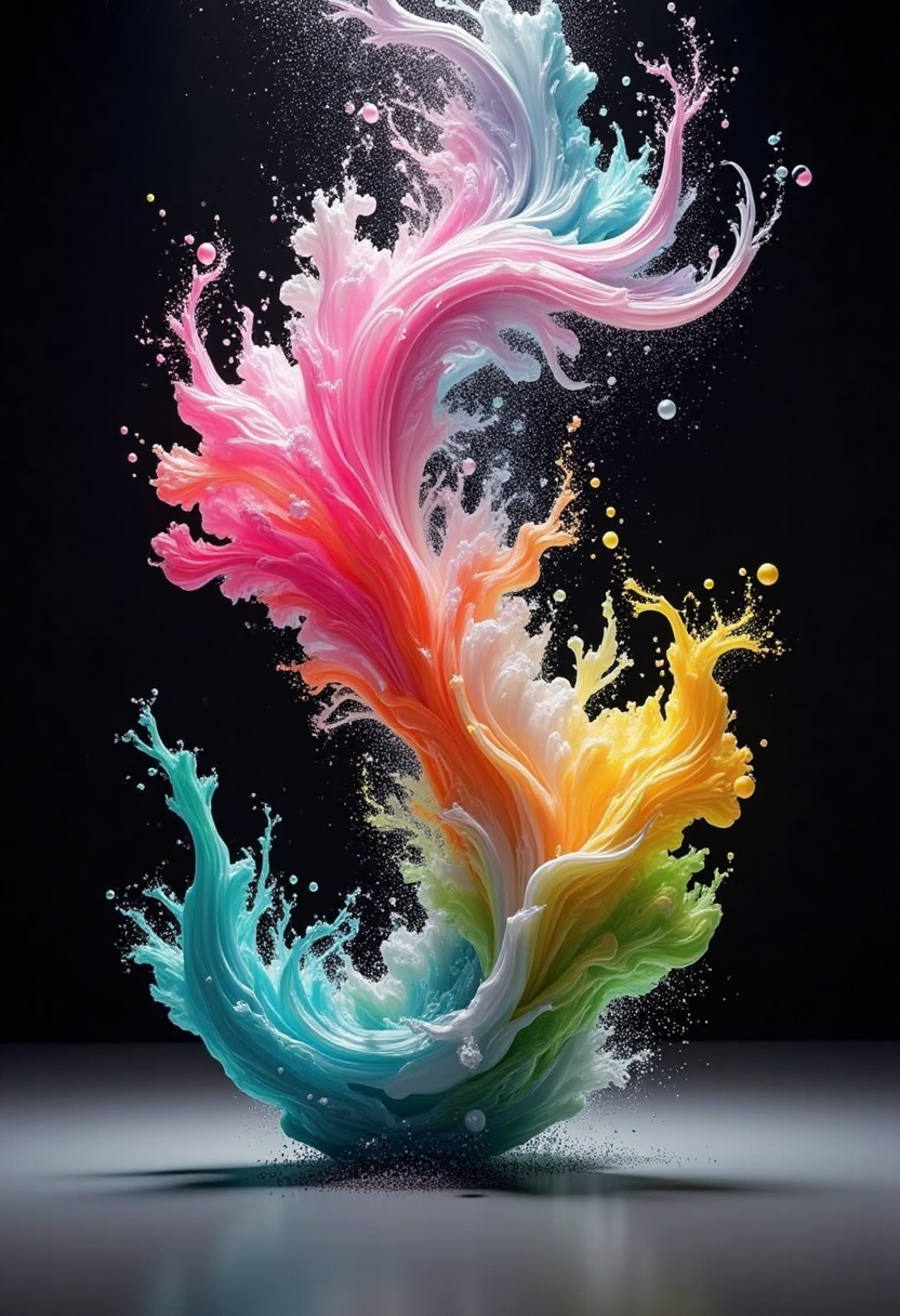 컬러 플루이드 아트에 집중하여 꿈결 같은 아름다운 시각 효과를 생성하며, 상상을 뿌려지는 색채로 예술작품으로 변환합니다.