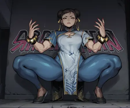 chun li, double bun, brown hair, brown eyes, - bangs, - will differ based on attire lora