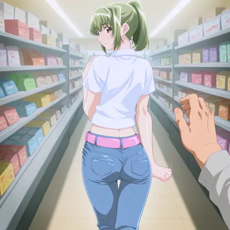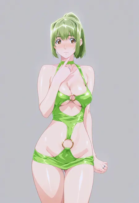 Trigger word: murohka saya, green hair, ponytail, brown eyes