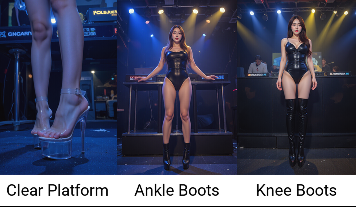 因为没有图片数据支撑,两双靴子只能从 girl-in-scene 图片中有限学习,同时大量融合了有图片数据支撑的 Clear Platform 的特点。