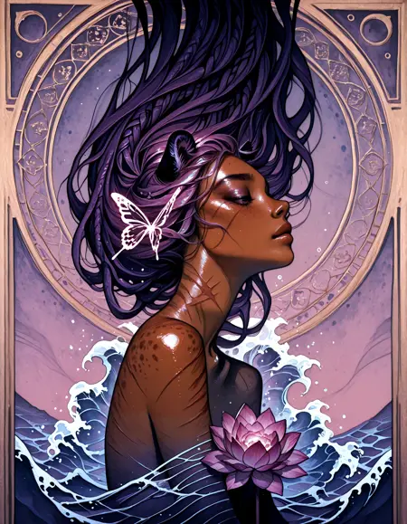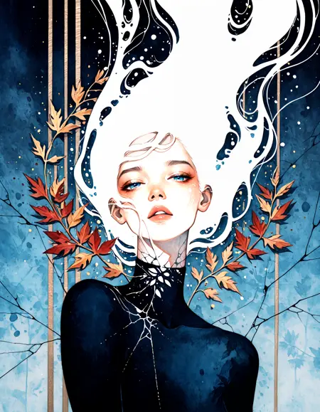 建议:柔和的阴影、绘画感、半色调效果、细腻线条、空灵、梦幻、传统媒介、长发、水彩(媒介)、绘画(媒介)