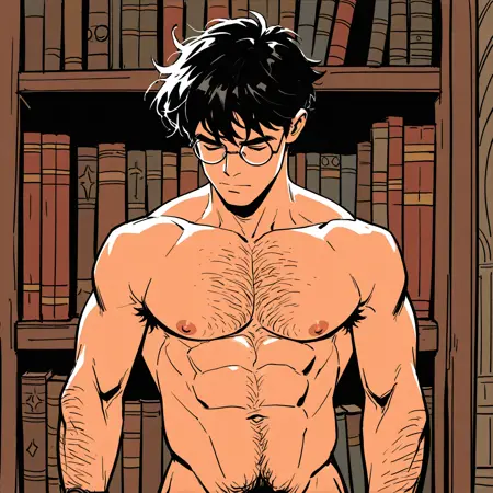 <lora:HARRY_POTTER:1> harry_potter, short hair, glasses, black hair, male focus, round eyewear, 1boy, green eyes, shirt, solo, nipples, pectorals, collared shirt, necktie, penis, blush, nude, erection, closed mouth, upper body, uncensored, looking at viewer, white shirt