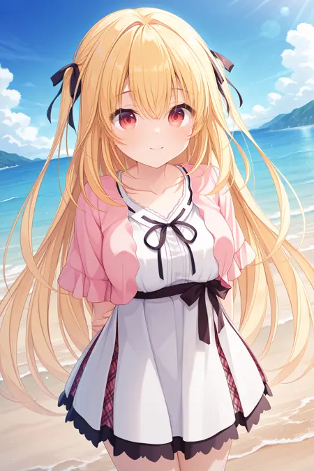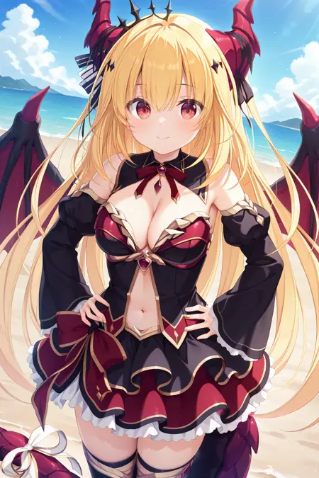 | 训练词汇 | haru, blonde hair, red eyes, bangs, long hair, hair between eyes, 已复制! red dragon horns, 已复制! haru daily, hair ribbon, collarbone, black waist ribbon, black neck ribbon, short dress, short sleeves, pink jacket, 已复制! white horn ribbon, 已复制! haru swimsuit, swimsuit, frilled bikini, pink_frills, flower hair ornament, white clothes bow, flower bracelet, 已复制! haru cosplay, cleavage, striped hair bow, black hair ornament, black long detached sleeves, layered skirt, navel cutout, red neck ribbon, detached collar, black diadem, thighhighs, 已复制! black horns ribbon, dragon tail, dragon wings, tail ribbon, 已复制! |