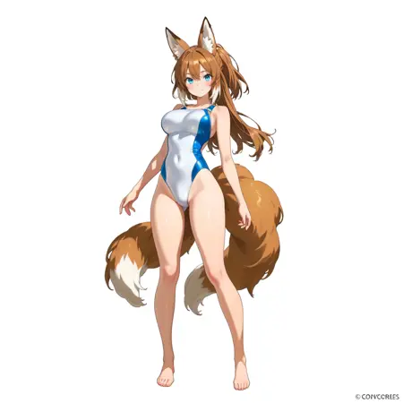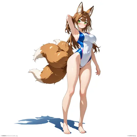 Civitai 茶白髪の巨乳狐娘マリモ / Marimo, brown and white hair large breasts fox girl.