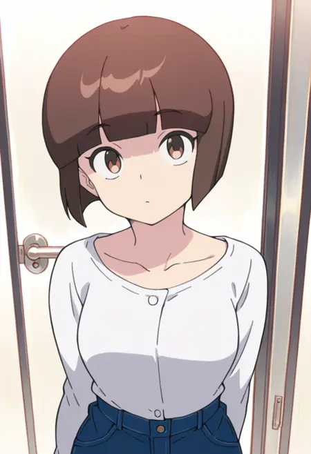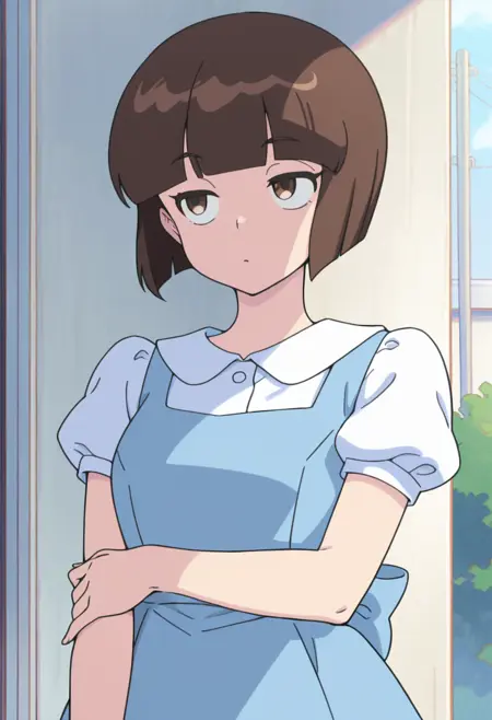 nabikitendo, 1girl, solo, brown eyes, brown hair, short hair, blunt bangs, bob cut,