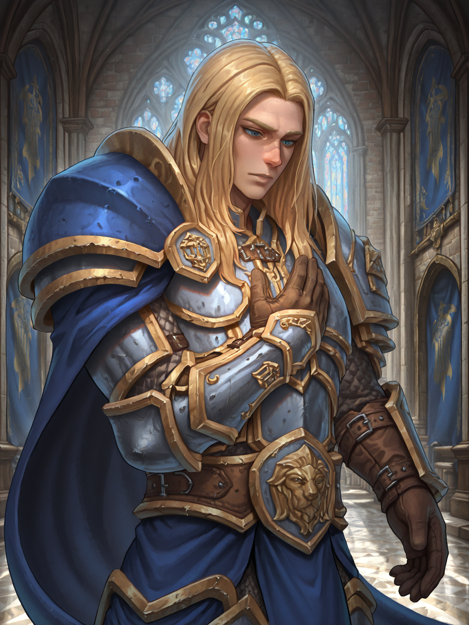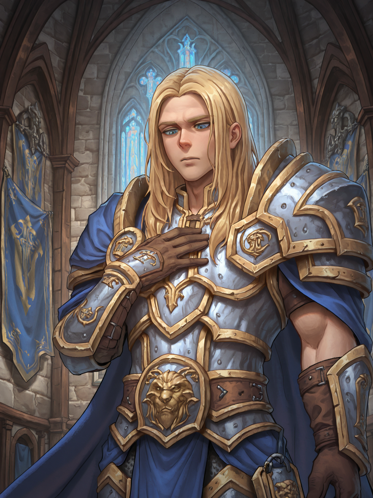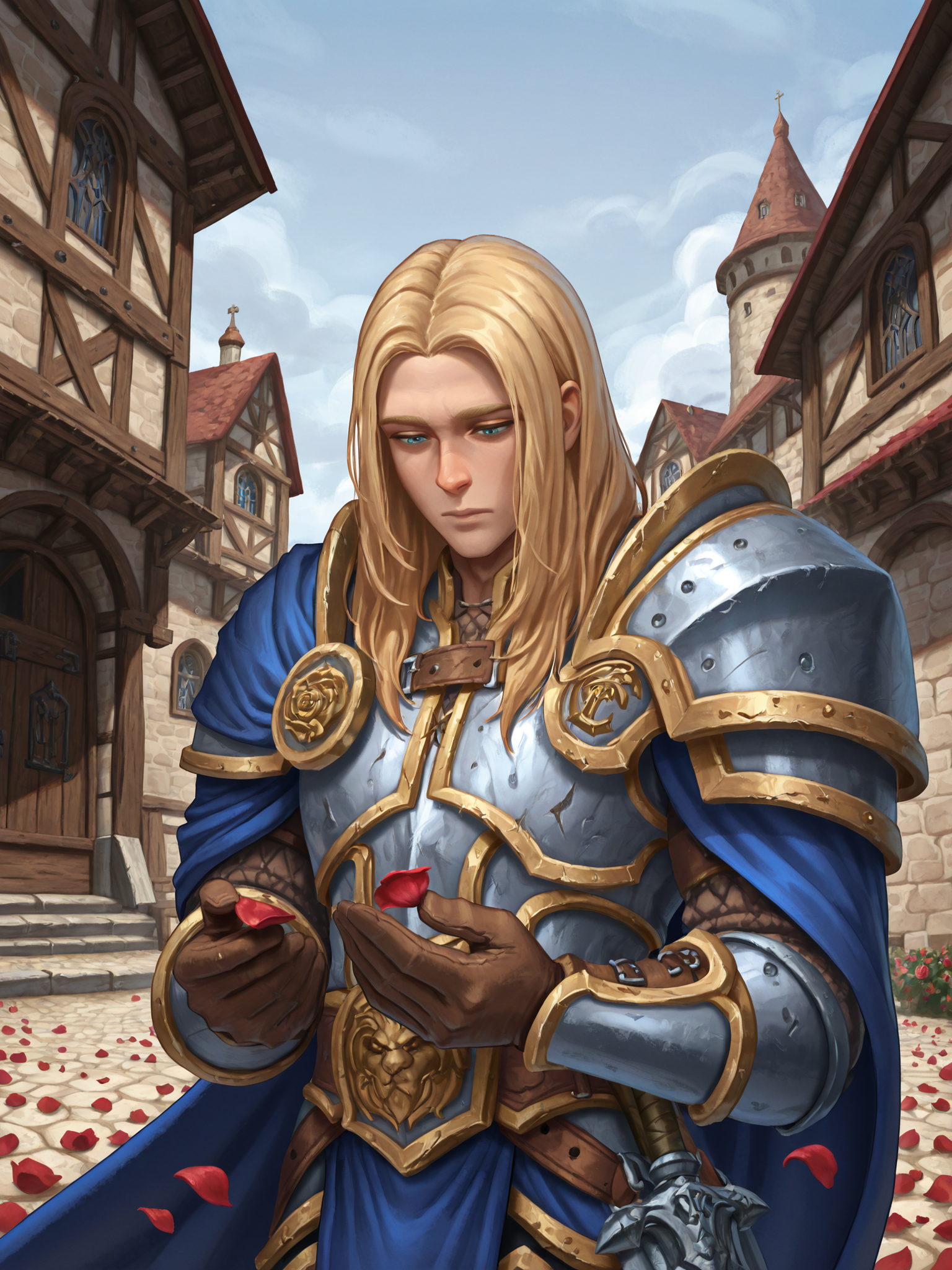 I wanted there to be a better lora for Prince Arthas (pre-villain arc) so I made this. It is not at all trained on his return to Lordaeron or anything after, so it's almost like he never did anything wrong! (Forget about the purging of Stratholme, even if that were to have happened he would've been justified in doing it surely, as with anything that happened in Northrend.)
