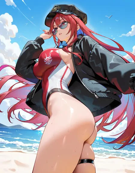 erbnatsu, jacket, hat, elbow gloves, sunglasses,