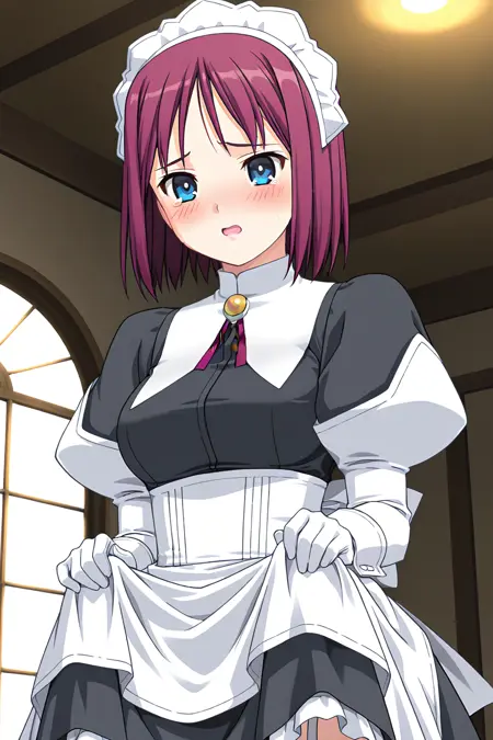 虽然很像某款游戏中的女仆,但其实是不同的人物。女仆服的袖子保留了扭蛋元素,但只做一边太孤单了,因此才制作了这一版,建议将其视为放松用的LoRA使用。