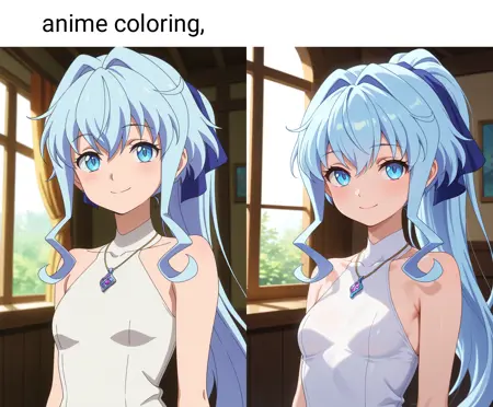 在提示词中使用 "anime coloring" 会使插图更接近动漫风格。