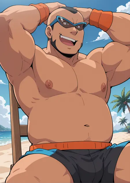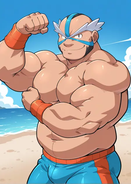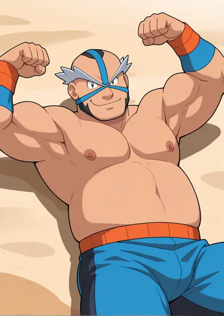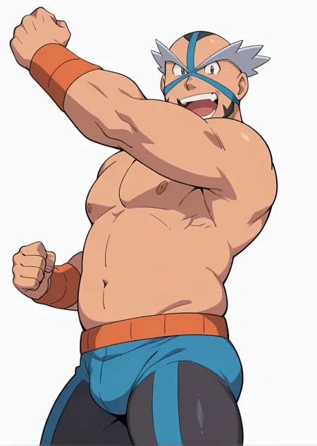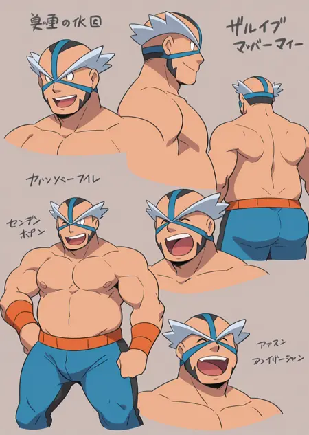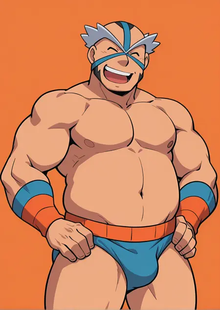 I made this eccentric midde-aged Pokemon Gym Leader from Pastoria City, Crasher Wake. He's known for Water-Type Gym, Wrestler, and has hobby of singing of his wrestling intro song or other song that might he want to sing (????).