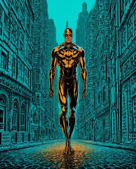 アラン・ムーアは物語と脚本を執筆し、現実的で成熟した世界観の中でスーパーヒーローの習慣を再構築する複雑なナラティブを構築しました。