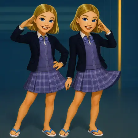 lilly20, 1girl, blue eyes, blonde hair, short hair, minskirt, school uniform