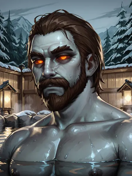 通用:1个男孩,单人,有色皮肤,灰色皮肤,短发,棕色头发,面部毛发,胡子,胡须,橙色眼睛,有色巩膜,发光,发光的眼睛